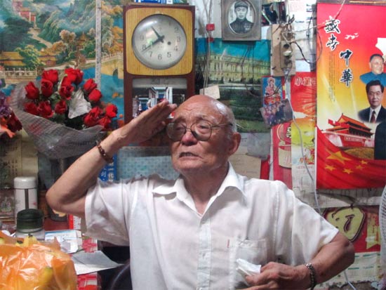 在陳相德家中,墻上掛的是中國地圖、中國工農(nóng)紅軍地圖,堂屋里掛著中國偉人畫像、開國十大元帥畫像,顯示出他對抗戰(zhàn)歷史的銘記。陳相德在抗日戰(zhàn)場上穿越槍林彈雨,沐浴硝煙彌漫,親眼目睹過日軍飛機(jī)被擊落,F(xiàn)在提起當(dāng)年的情形,他仍無比激動。