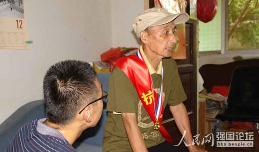 2015年適逢中國人民抗日戰(zhàn)爭暨世界反法西斯戰(zhàn)爭勝利70周年,人民網(wǎng)作為獨家媒體支持推出“全國大學(xué)生紀念抗戰(zhàn)勝利70周年尋訪活動”,引導(dǎo)青年大學(xué)生主動、自覺地在社會實踐中學(xué)習(xí)“歷史課”,緬懷抗戰(zhàn)先烈,傳承革命精神。在尋訪活動中,不少團隊對抗戰(zhàn)老兵進行采訪,記錄老兵們鮮為人知的抗戰(zhàn)故事。
