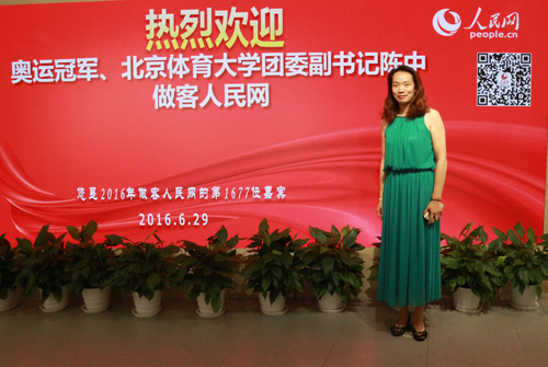 奧運(yùn)冠軍、北京體育大學(xué)團(tuán)委副書記陳中做客人民網(wǎng)(代睿 攝)