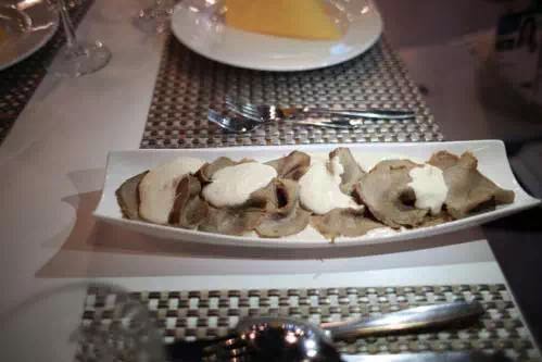 一道好的Carpaccio幾乎要用上一天的時間,因此意大利人一般也只有雙休日才能好好享受這道前菜。作為意大利經典的開胃菜,長相普通的Carpaccio讓人感覺出乎意料的鮮美,幾片薄得透明的生肉片最大限度地保留了牛肉的生鮮美味,柔軟綿延。