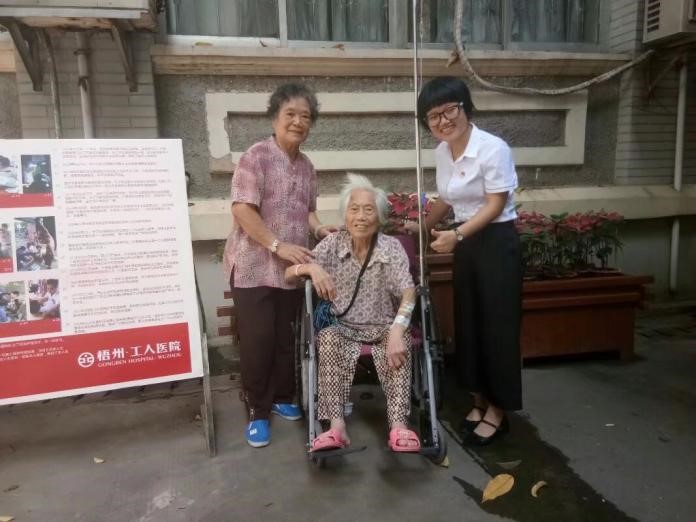 “孩子,我不能在福利院住了,我沒(méi)有地方去了!秉S奶奶抹著眼淚說(shuō)。原來(lái)黃奶奶年事已高,需要親屬作為擔(dān)保人與社會(huì)福利院簽訂入院協(xié)議才能入住。但黃奶奶與孩子的關(guān)系并不好——在梧州生活的大兒子不愿照顧黃奶奶,也不愿為黃奶奶簽訂入院協(xié)議;小兒子則遠(yuǎn)在上海,常年不回梧州。因此,黃奶奶無(wú)法辦理合法合規(guī)的社會(huì)福利院入住手續(xù)。